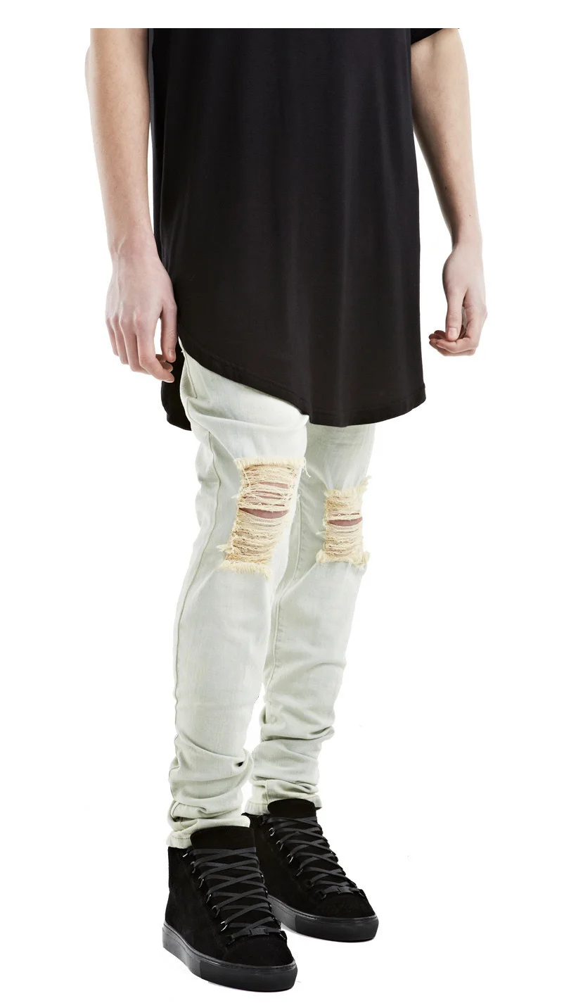 Our second brand is Represent Clothing. They have been on our radar for a while, and their new FURY15 collection is fire. Their new denim varies from waxed denim to distressed denim and biker denim. Their denim is very tapered and the length is 32' on every size. Go true to waist size.