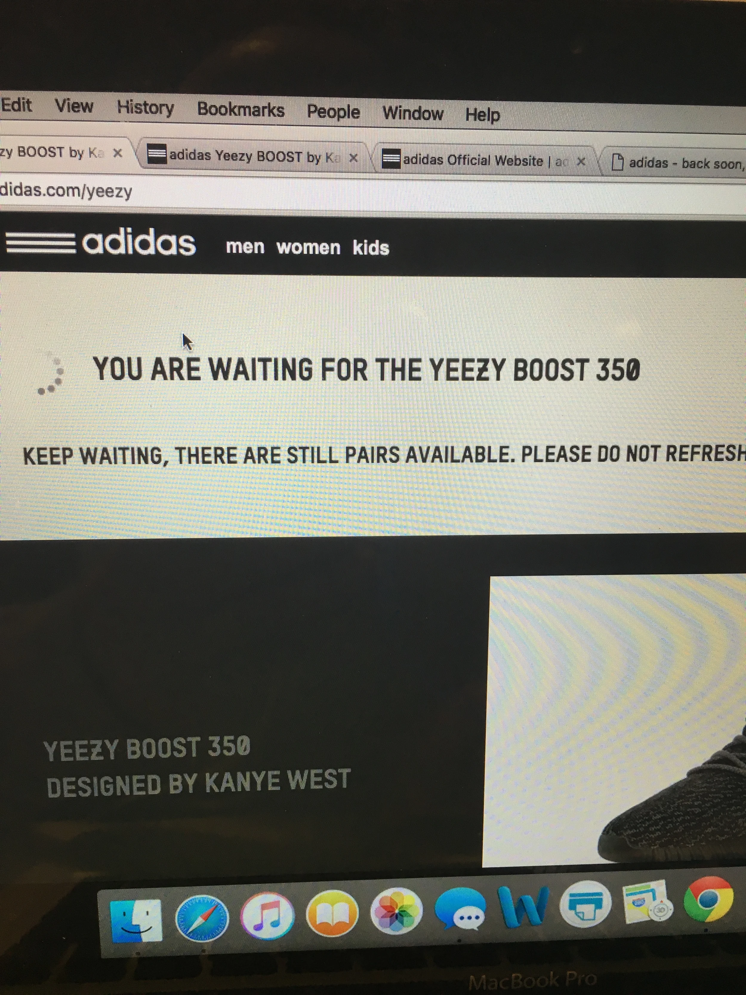 Adidas.com/Yeezy went live and I was waiting to be put into the room. After 30 minutes, I got in but was met an inventory error check. Now we all played the waiting game for that Adidas tweet.