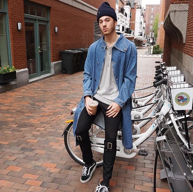 J.W Anderson denim coat- Comme Des Garcons pants- Vans- Acne beanie.