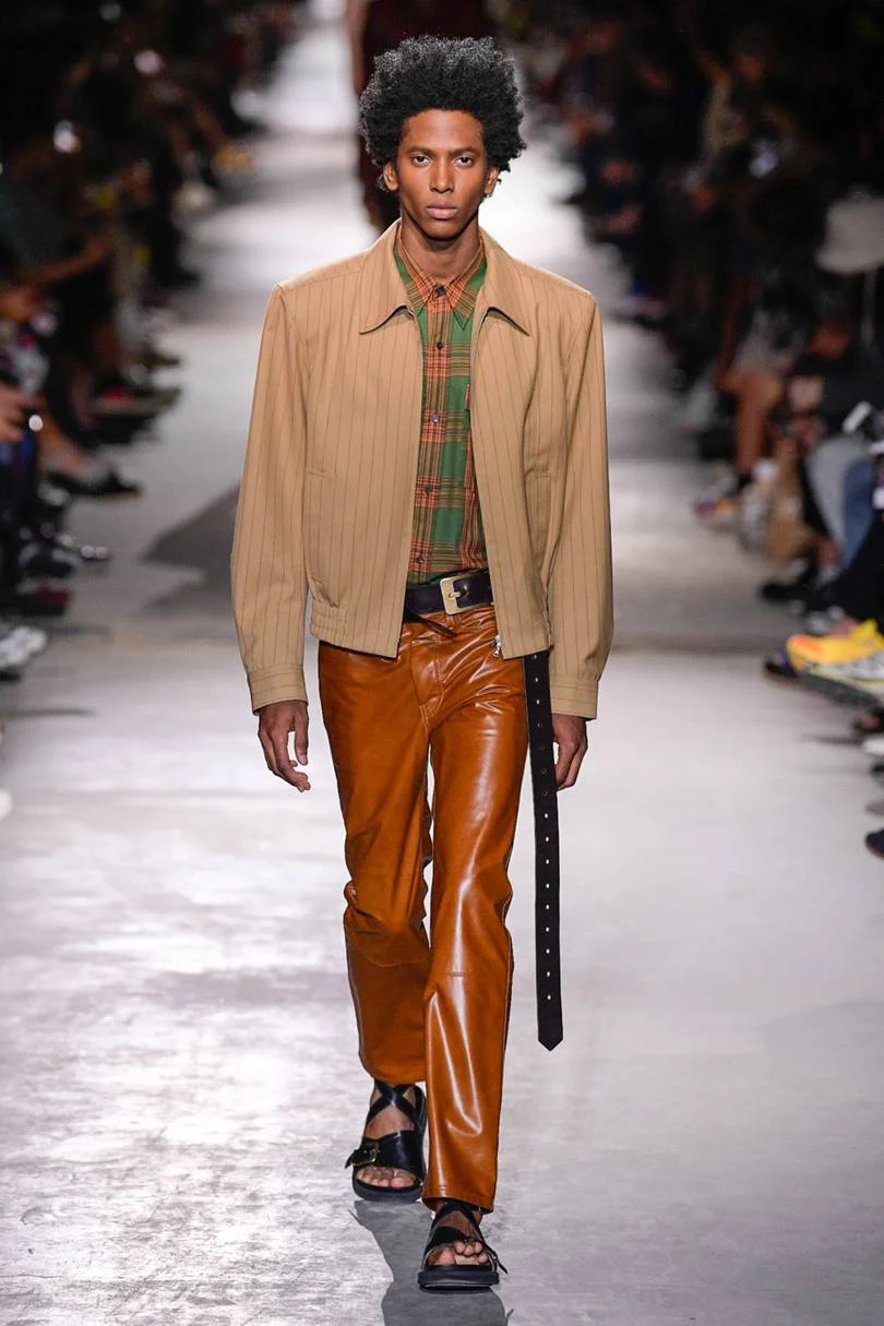 Dream-like and cinematic are old friends of Dries. For this collection, outfits were shown in pieces broken out among different models, as one look sees a pair of tapestry-like yellow trousers paired with a cafe-au-lait checkered suit jacket (with the “matching” pieces of those sets coming out on later models). In classic Van Noten fashion,